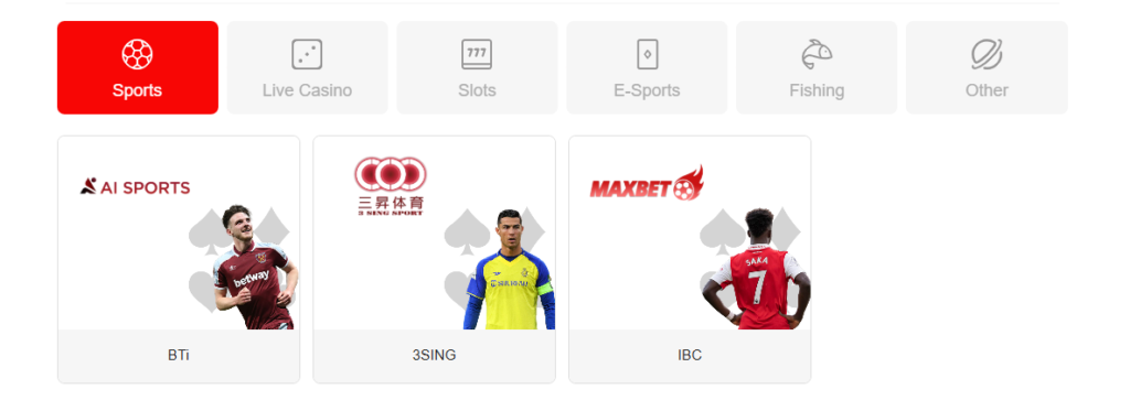 For sports fans, Sports Gaming through BTi, IBC, and 3Sing covers football, basketball, esports, and more. Speaking of esports, AB33 partners with iA, TF Gaming, and IM to offer competitive odds on popular tournaments.